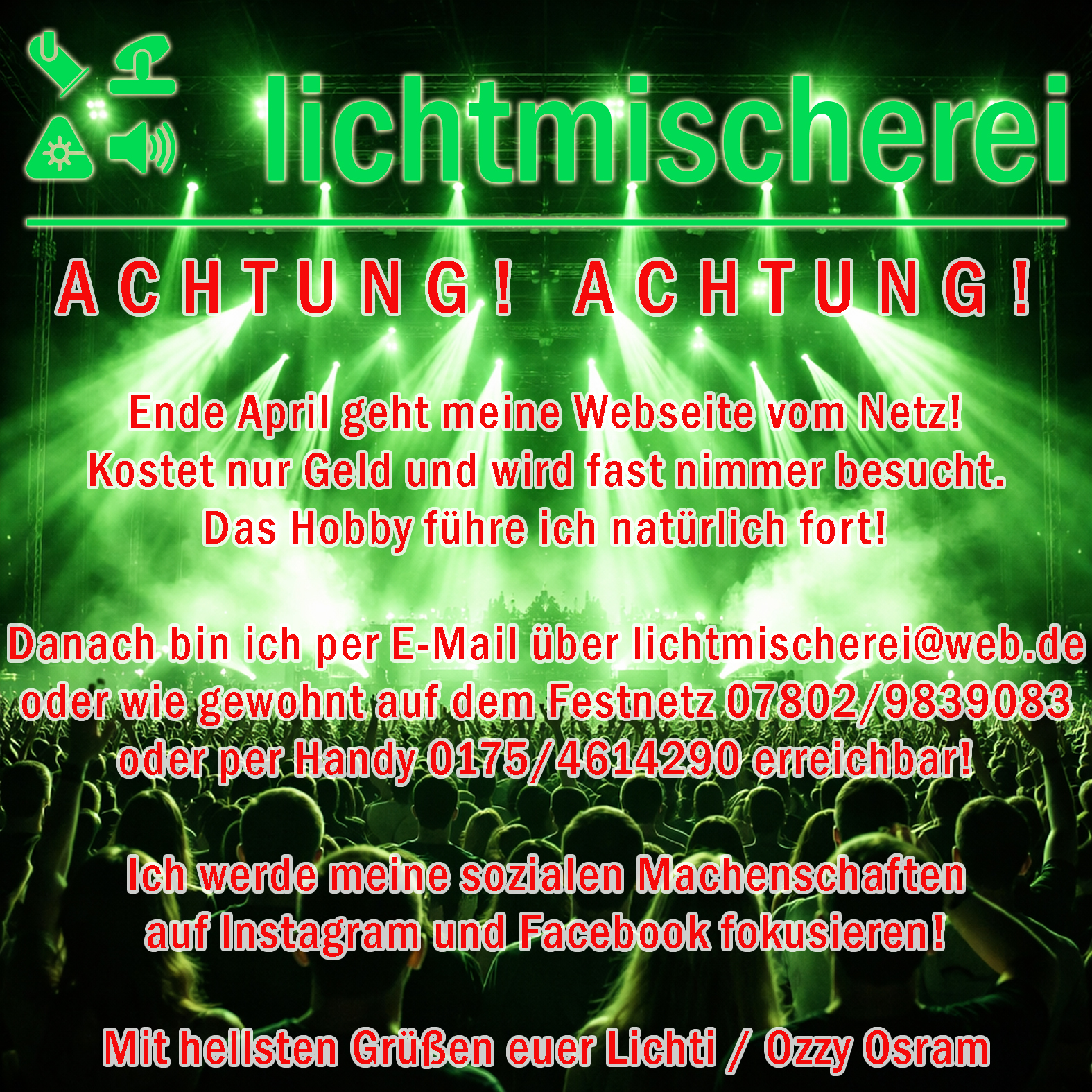 Meta-Daten: alexander doll am dorfbach 5 77704 oberkirch lichti ozzy osram lichtmischerei www.lichtmischerei.de licht lichttechnik beleuchtung lichtdesign lichtmischer ton tontechnik tonmischer beschallung bühnentechnik rigging trussing oberkirch kehl appenweier achern bühl lautenbach oppenau bad peterstal griesbach offenburg red hot